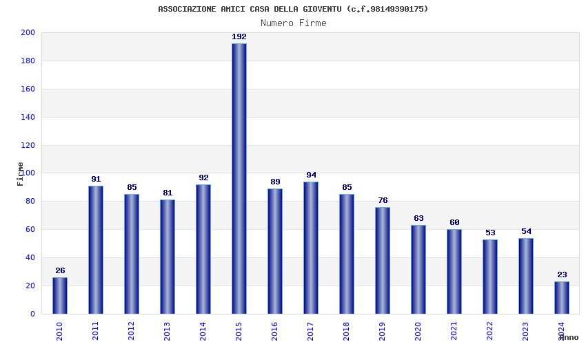 | Anno | Firme | Importi | Media | Naz. | Reg. | Prov. | Comu. |