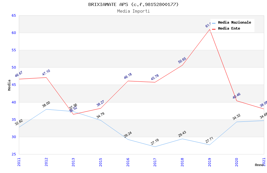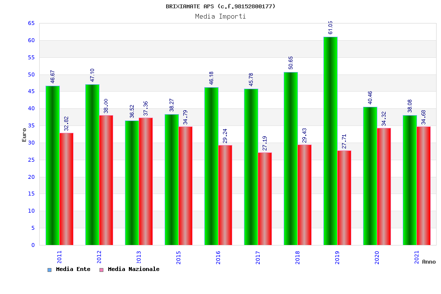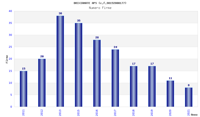 | Anno | Firme | Importi | Media | Naz. | Reg. | Prov. | Comu. |