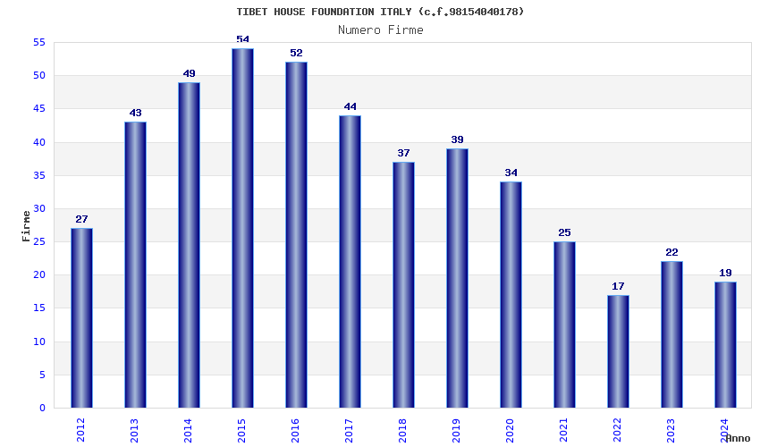 | Anno | Firme | Importi | Media | Naz. | Reg. | Prov. | Comu. |
