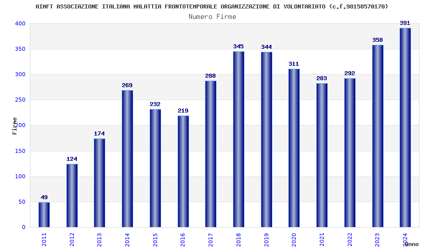 | Anno | Firme | Importi | Media | Naz. | Reg. | Prov. | Comu. |