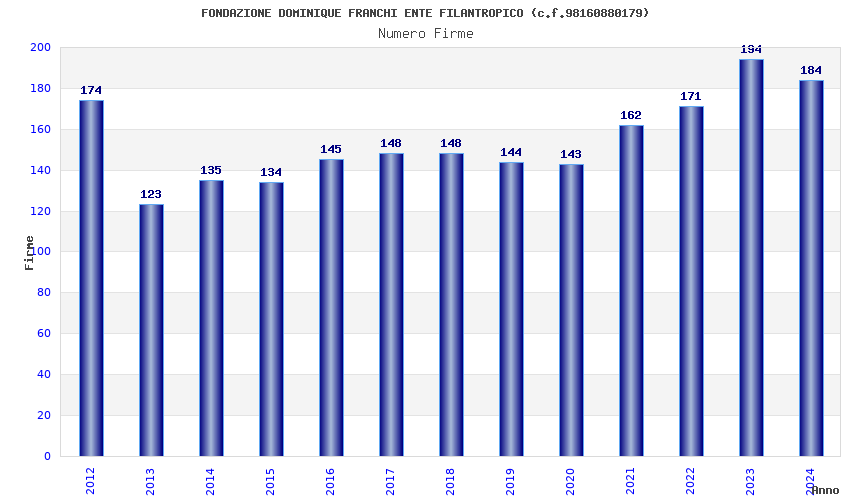 | Anno | Firme | Importi | Media | Naz. | Reg. | Prov. | Comu. |
