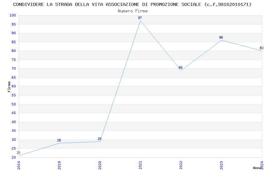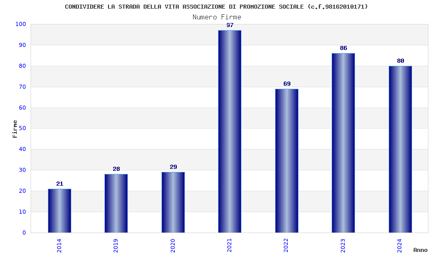 | 2021 | 97 | 2.262,51 | 23,32 | 21.888 | 4.860 | 629 | 12 |