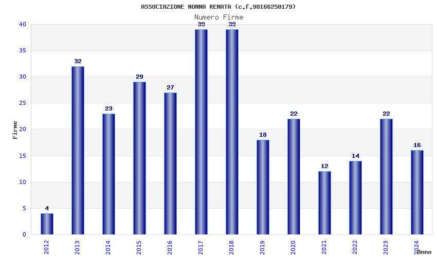 | Anno | Firme | Importi | Media | Naz. | Reg. | Prov. | Comu. |