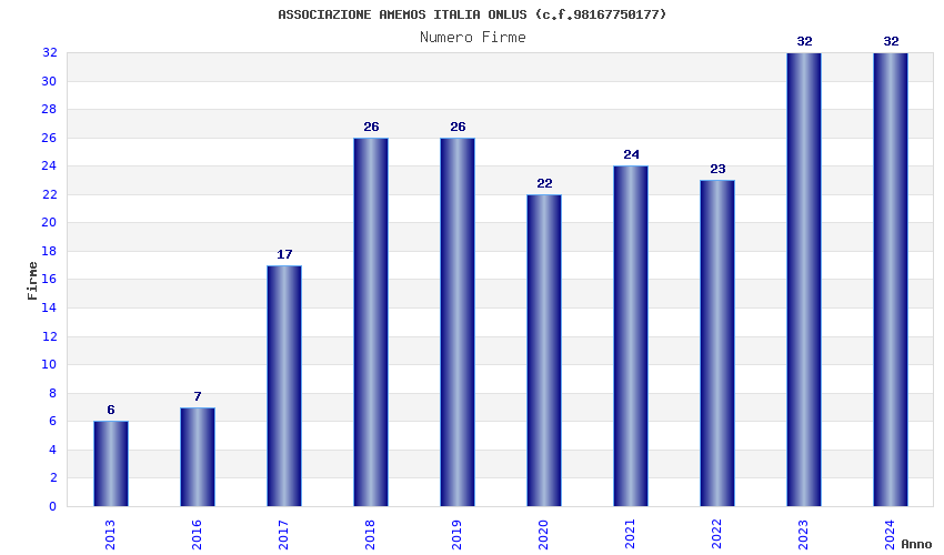 | Anno | Firme | Importi | Media | Naz. | Reg. | Prov. | Comu. |