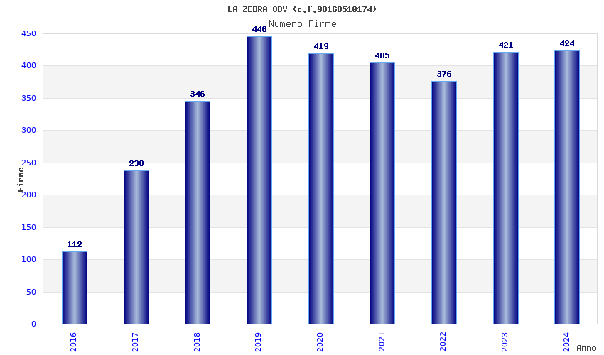 | Anno | Firme | Importi | Media | Naz. | Reg. | Prov. | Comu. |