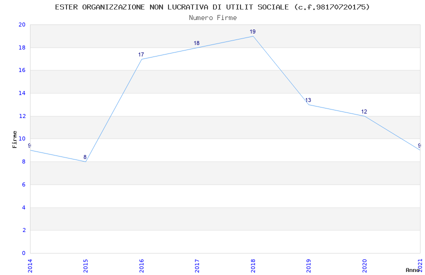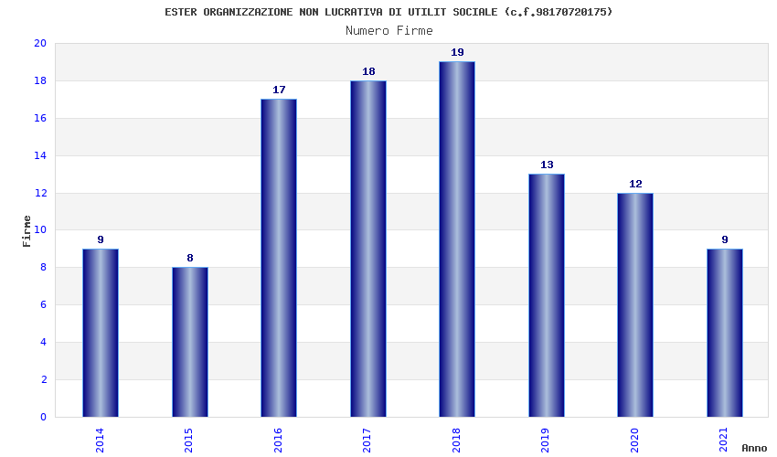 | Anno | Firme | Importi | Media | Naz. | Reg. | Prov. | Comu. |