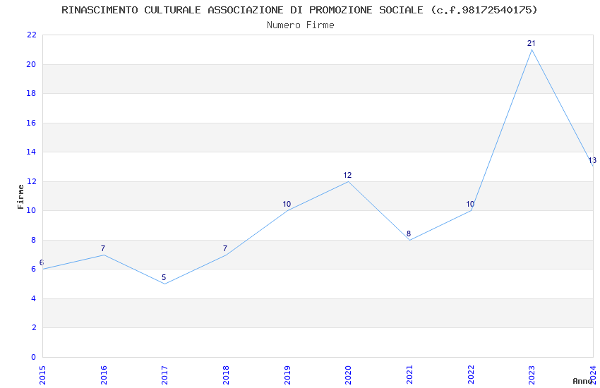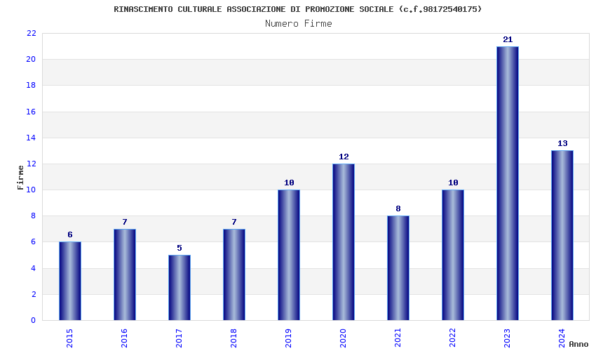 | Anno | Firme | Importi | Media | Naz. | Reg. | Prov. | Comu. |