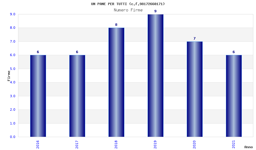 | Anno | Firme | Importi | Media | Naz. | Reg. | Prov. | Comu. |