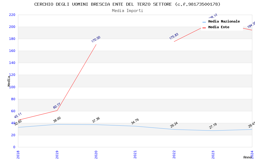 | Anno | Firme | Importi | Media | Naz. | Reg. | Prov. | Comu. |