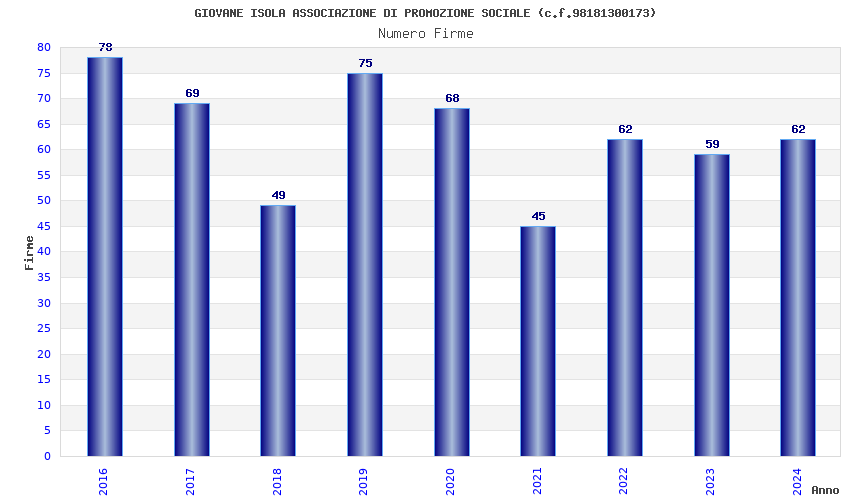 | 2019 | 75 | 1.741,87 | 23,22 | 26.296 | 5.839 | 767 | 2 |
