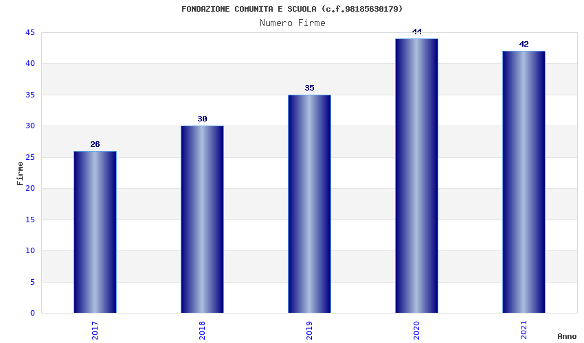 | Anno | Firme | Importi | Media | Naz. | Reg. | Prov. | Comu. |