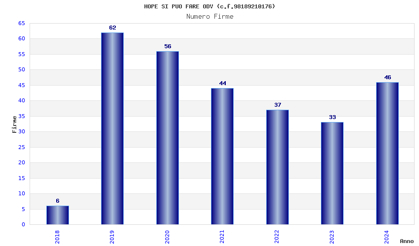 | Anno | Firme | Importi | Media | Naz. | Reg. | Prov. | Comu. |