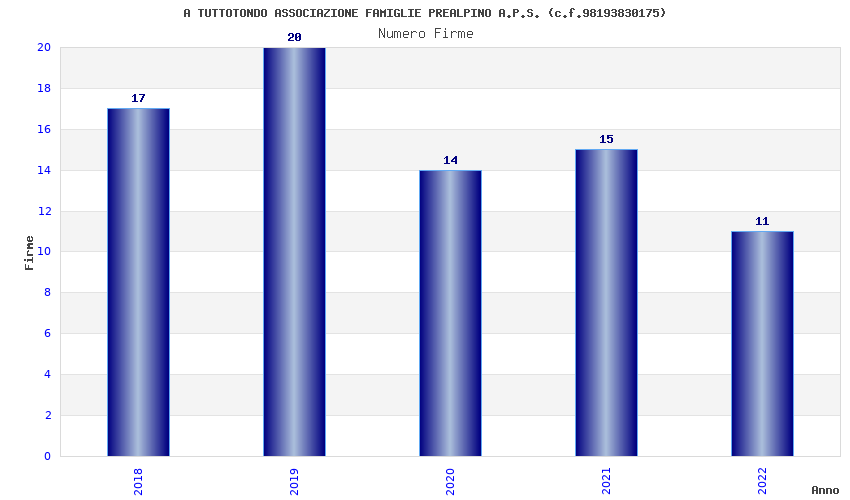 | Anno | Firme | Importi | Media | Naz. | Reg. | Prov. | Comu. |