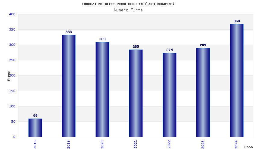 | Anno | Firme | Importi | Media | Naz. | Reg. | Prov. | Comu. |