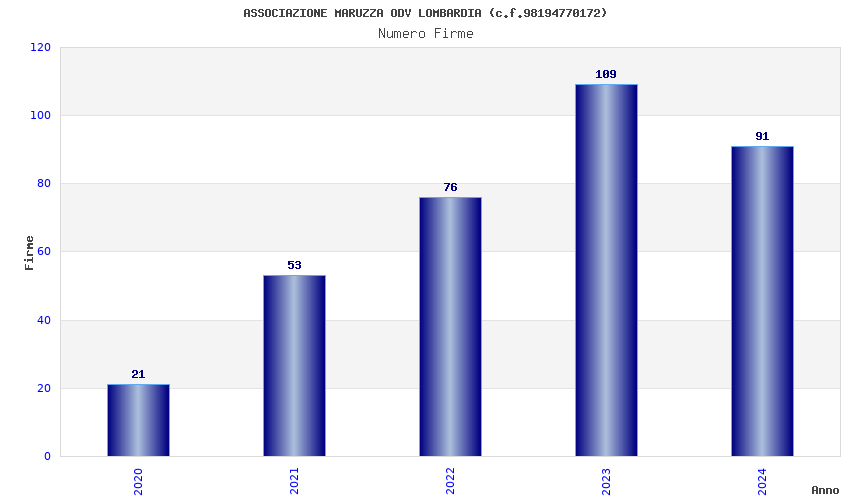 | Anno | Firme | Importi | Media | Naz. | Reg. | Prov. | Comu. |