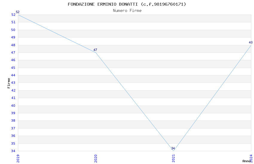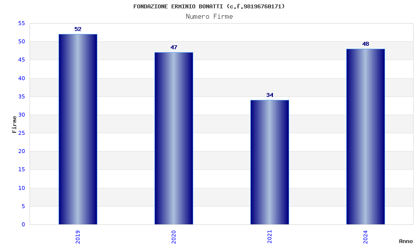 | Anno | Firme | Importi | Media | Naz. | Reg. | Prov. | Comu. |