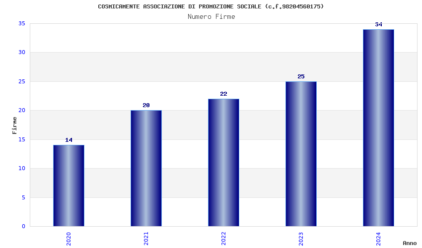 | Anno | Firme | Importi | Media | Naz. | Reg. | Prov. | Comu. |