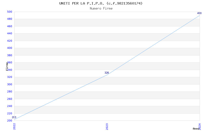 | Anno | Firme | Importi | Media | Naz. | Reg. | Prov. | Comu. |