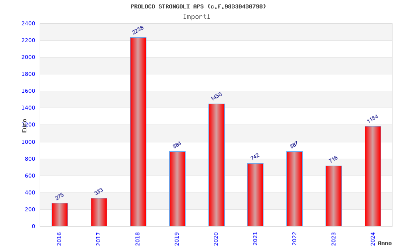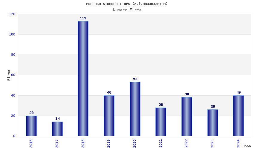 | Anno | Firme | Importi | Media | Naz. | Reg. | Prov. | Comu. |