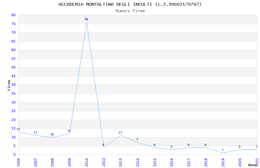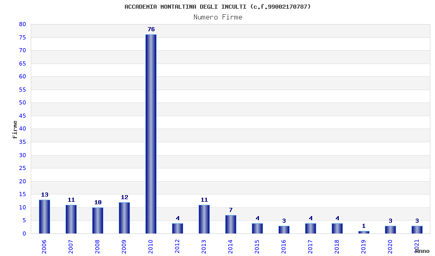 | Anno | Firme | Importi | Media | Naz. | Reg. | Prov. | Comu. |