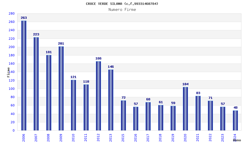 | Anno | Firme | Importi | Media | Naz. | Reg. | Prov. | Comu. |