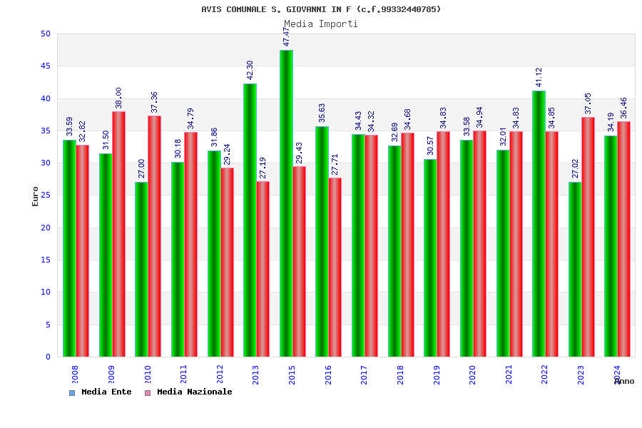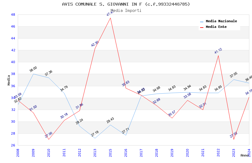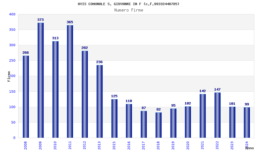 | Anno | Firme | Importi | Media | Naz. | Reg. | Prov. | Comu. |