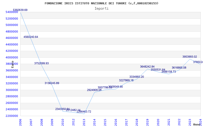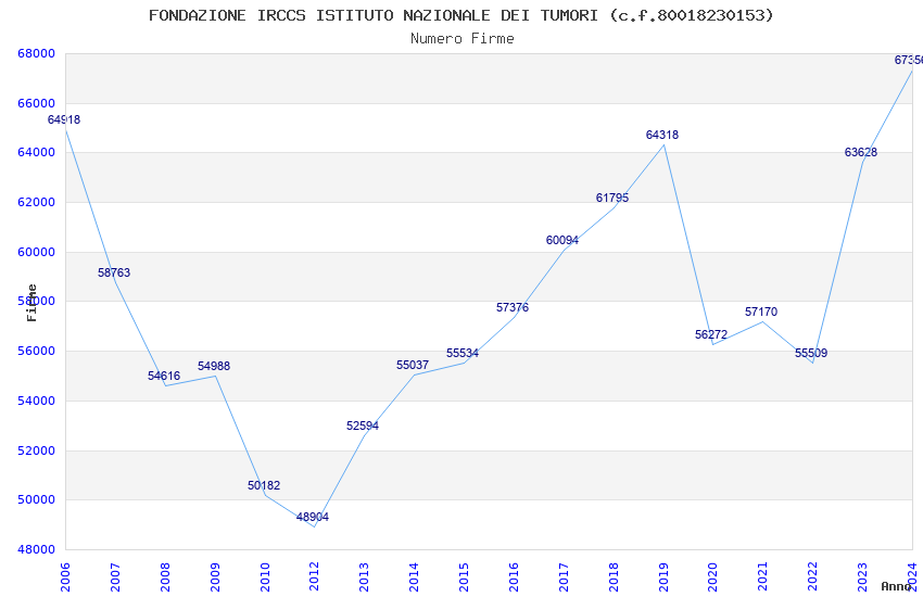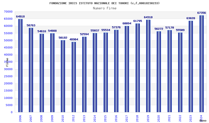 | Anno | Firme | Importi | Media | Naz. | Reg. | Prov. | Comu. |