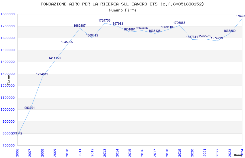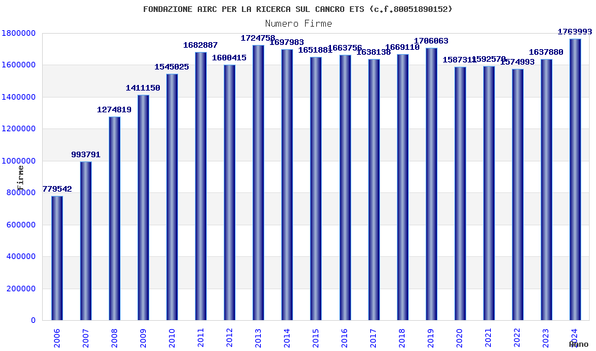 | Anno | Firme | Importi | Media | Naz. | Reg. | Prov. | Comu. |