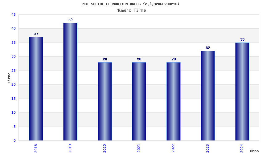 | Anno | Firme | Importi | Media | Naz. | Reg. | Prov. | Comu. |
