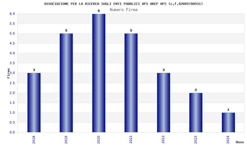 | Anno | Firme | Importi | Media | Naz. | Reg. | Prov. | Comu. |